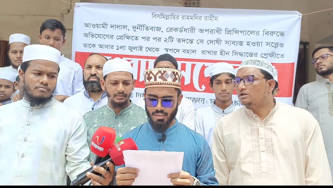 বুধবার (৩০ জুন) দুপুর ১২ টায় মাদ্রাসা প্রাঙ্গণে এ সংবাদ সম্মেলনে মাদ্রাসা’র বহিস্কৃত প্রিন্সিপাল এটিএম ইফতেখারুল ইসলামের বিরুদ্ধে নানান অভিযোগ তোলেন শিক্ষার্থীরা।